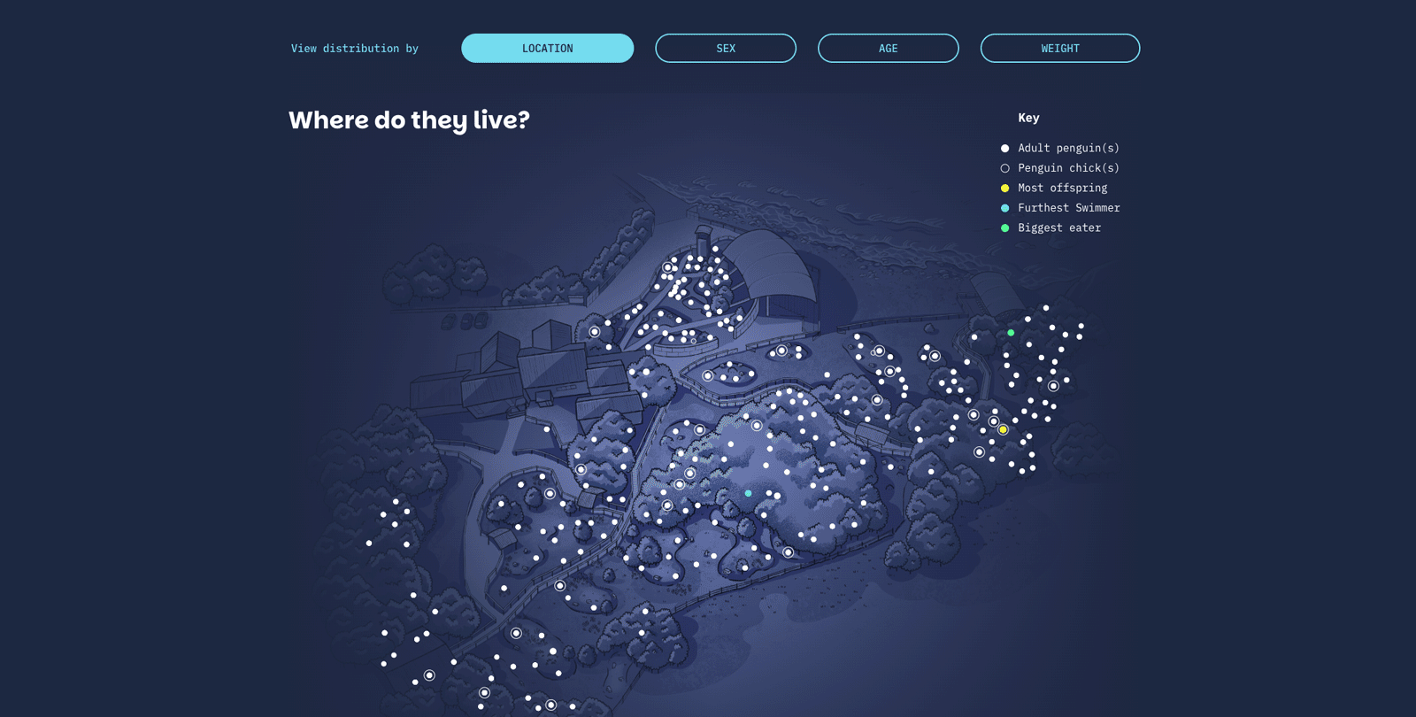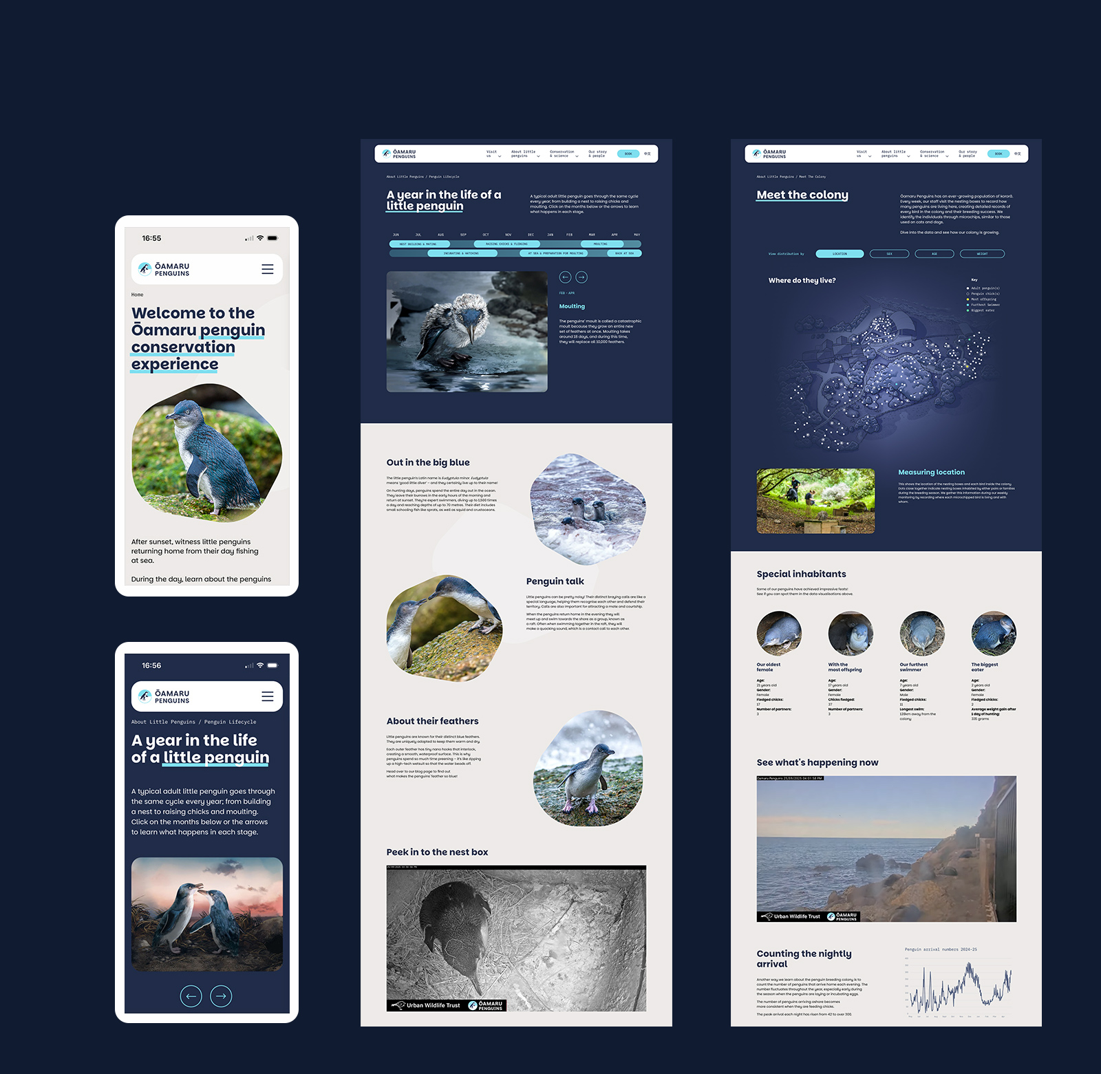 This came to life across the visitor centre, physical collateral, and the website, which uses delightful real-time data visualisation to show what the penguins are up to each day.