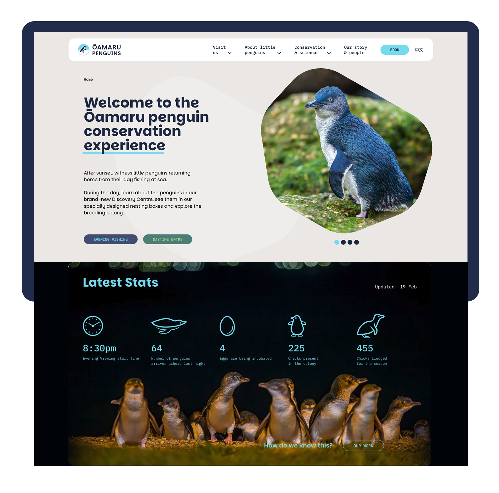 This brand refresh aligned with a major overhaul of the Ōamaru Penguins visitor centre. It was a unique opportunity to bring the rich data stories of the penguins to life and elevate the organisation to become a benchmark of sustainable eco-tourism for Aotearoa NZ.